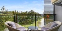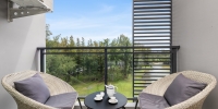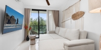 В этой квартире гостиная, объединенная с кухней и обеденной зоной. В гостиной есть свой собственный балкон с креслами и столиком, где вы будете наслаждаться видом на море, озеро и лес в течение дня.